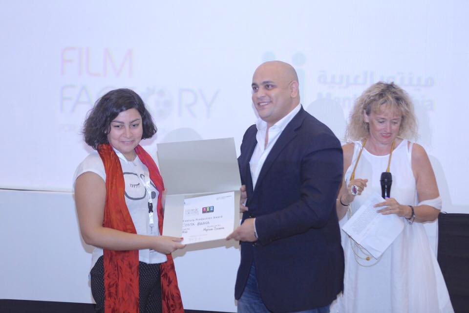 سلم أحمد بدوي مدير عام شركتي (دولار فيلم) و(نيو سينشري سينما) اليوم الخميس بالجامعة الالمانية بالجونة الجائزة المقدمة من (نيوسينشري للأفلام) التي في مرحلة التطوير في مسابقة ملتقى الجونة السينمائي المقام ضمن فعاليات مهرجان الجونة السينمائي في دورته الاولى وقدرها عشرة الالف دولار للمخرجة اللبنانية (مونيا عقل) عن فيلمها كوستا برافا.