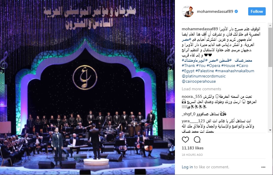 الوقوف على مسرح دار الأوبرا المصرية في حلمٌ لكل فنان، وتشرفت أن أقف هذا العام أيضا أمام جمهور كريم وعزيز، أشكركم أحبابي في مصر العروبة، وأشكر د.إيناس عبد الدايم مديرة دار الأوبرا ود.جيهان مرسي على حفاوة الاستقبال والتنظيم الرائع وإلى لقاء قريب.