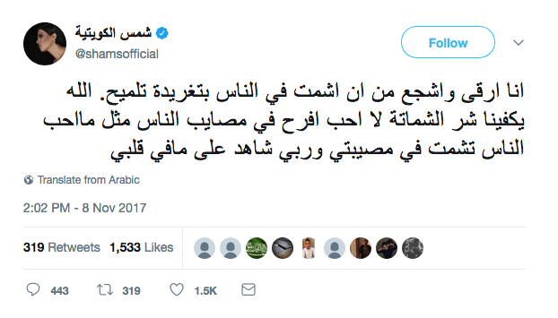 علقت النجمة شمس الكويتية، عبر حسابها الشخصي على موقع التدوينات القصيرة (تويتر)، على قرار إستبعادها من عضوية لجنة تحكيم الموسم الرابع من برنامج واستبدالها بالنجمة نوال الكويتية، نافية ما تم تداوله بشأن شماتتها بأحلام قائلة: