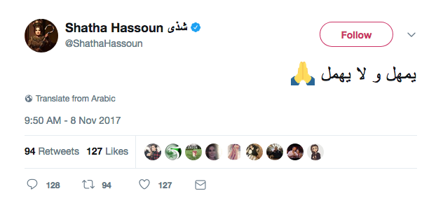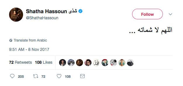 أما شذى حسون فعلّقت بتغريدتين، الاولى جاء فيها: