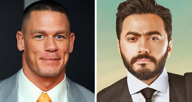 نشر المصارع العالمي جون سينا صورة للنجم المصري تامر حسني عبر حسابه الرسمي على موقع إنستجرام.