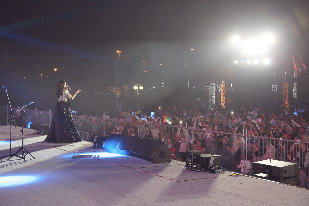 وسط فرحة إحتفالية باليوم الوطني لدولة الإمارات العربية المتحدة الـ46، أشعلت الفنانة ديانا حداد برفقة الجمهور الكبير في مدينة العين أجواء الفرحة بالمناسبة الغالية، متنقلة بين الأغنيات الوطنية والعاطفية الخليجية والعربية برفقة فرقتها الموسيقية بقيادة المايسترو إيلي العليا، والذي أقيم في المسرح الرئيسي لمدينة ألعاب الهيلي من تنظيم ورعاية بلدية العين.