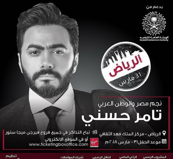 أعلن النجم المصري تامر حسني، عبر حساباته على مواقع التواصل الاجتماعي، أنه سيحيي حفلا آخر في المملكة العربية السعودية، وذلك في 31 آذار الجاري، في مركز الملك فهد الثقافي بمدينة الرياض.